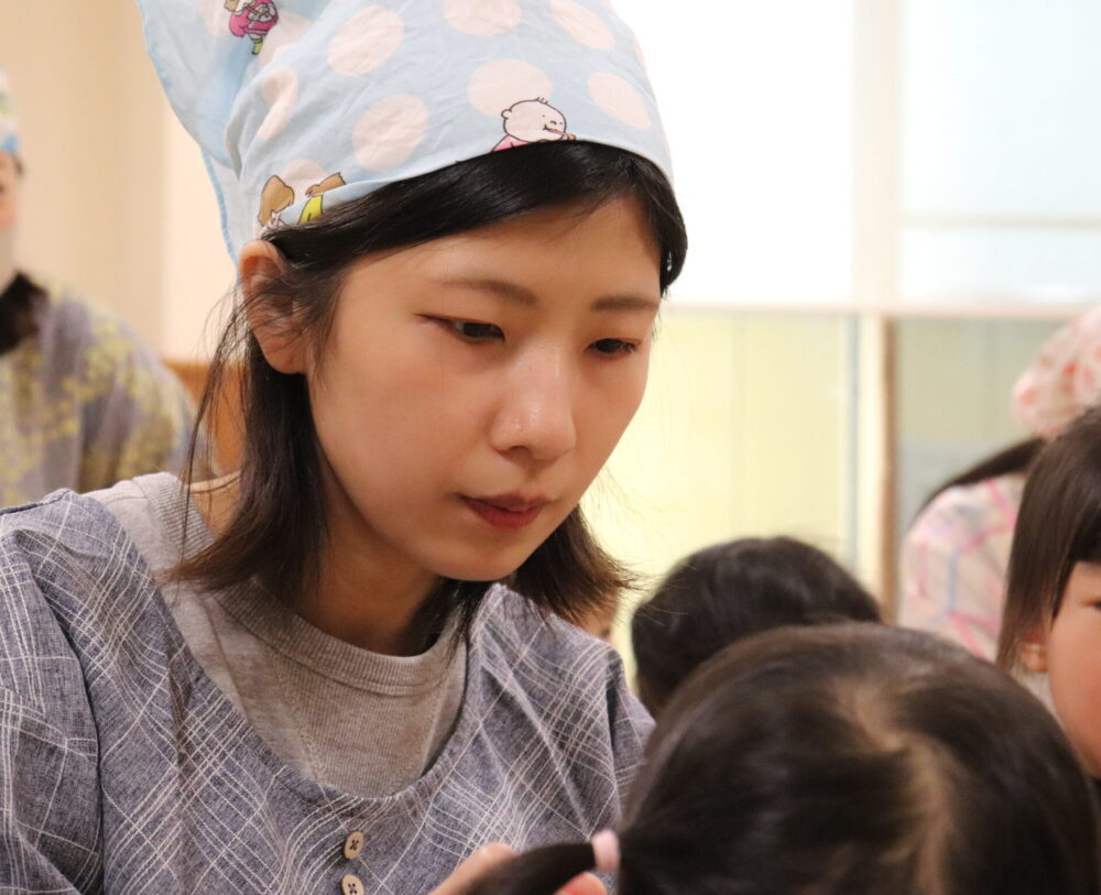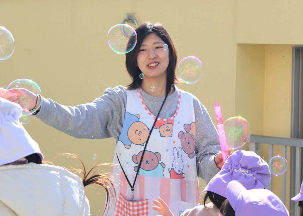 子どもたち一人ひとりの日々の成長を近くで見れることや、笑顔を見れることが楽しいです!色々な事ができるようになり、保護者の方や先生方と一緒に成長を喜ぶことができてとても嬉しく感じられます!
